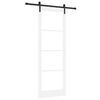 Denne skyvedøren kombinerer moderne design og praktisk bruk, og passer perfekt i et nåtidens hjem. Den slanke, rektangulære formen med rene linjer gir en minimalistisk stil som passer til innredningen i både soverom og stuer. Materialene av massivt furutre, glass og pulverlakkert stål gir den et sofistikert preg.