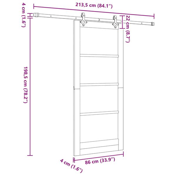 Skyvedøren med hardware-sett gir en stilig løsning for moderne interiører. Laget av massivt furutre, kryssfiner og pulverlakkert stål, passer denne døren sømløst inn i stuer og forvandler rommet med sin elegante og minimalistiske stil. Den er perfekt for dem som ønsker en funksjonell dør med estetisk kvalitet, og tilbyr glidende mekanismer som gir både privatliv og stil.