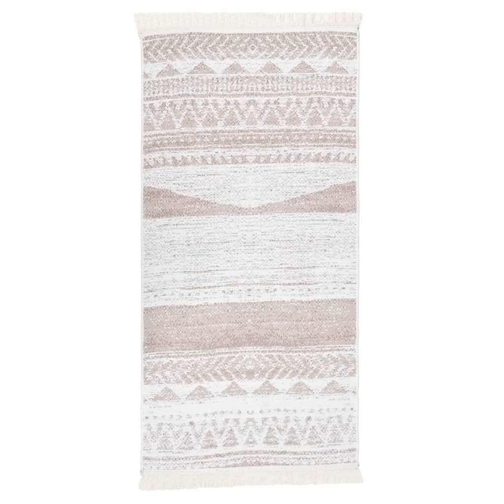 Dette gulvteppet er laget av 100 % bomull, og er behagelig å gå på barbeint. Dette innendørs teppet kan vaskes i vaskemaskin ved 30 °C i anbefalt syklus "Delikat". Dette teppet er vendbart, noe som betyr at det kan brukes på begge sider. Dessuten kan det også tjene som et pledd for å ta en lur.
