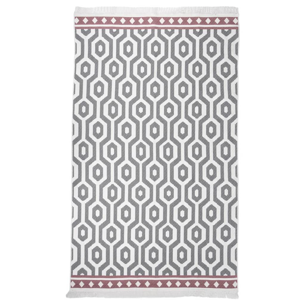 Dette gulvteppet er laget av 100 % bomull, og er behagelig å gå på barbeint. Dette innendørs teppet kan vaskes i vaskemaskin ved 30 °C i anbefalt syklus "Delikat". Dette teppet er vendbart, noe som betyr at det kan brukes på begge sider. Dessuten kan det også tjene som et pledd for å ta en lur.