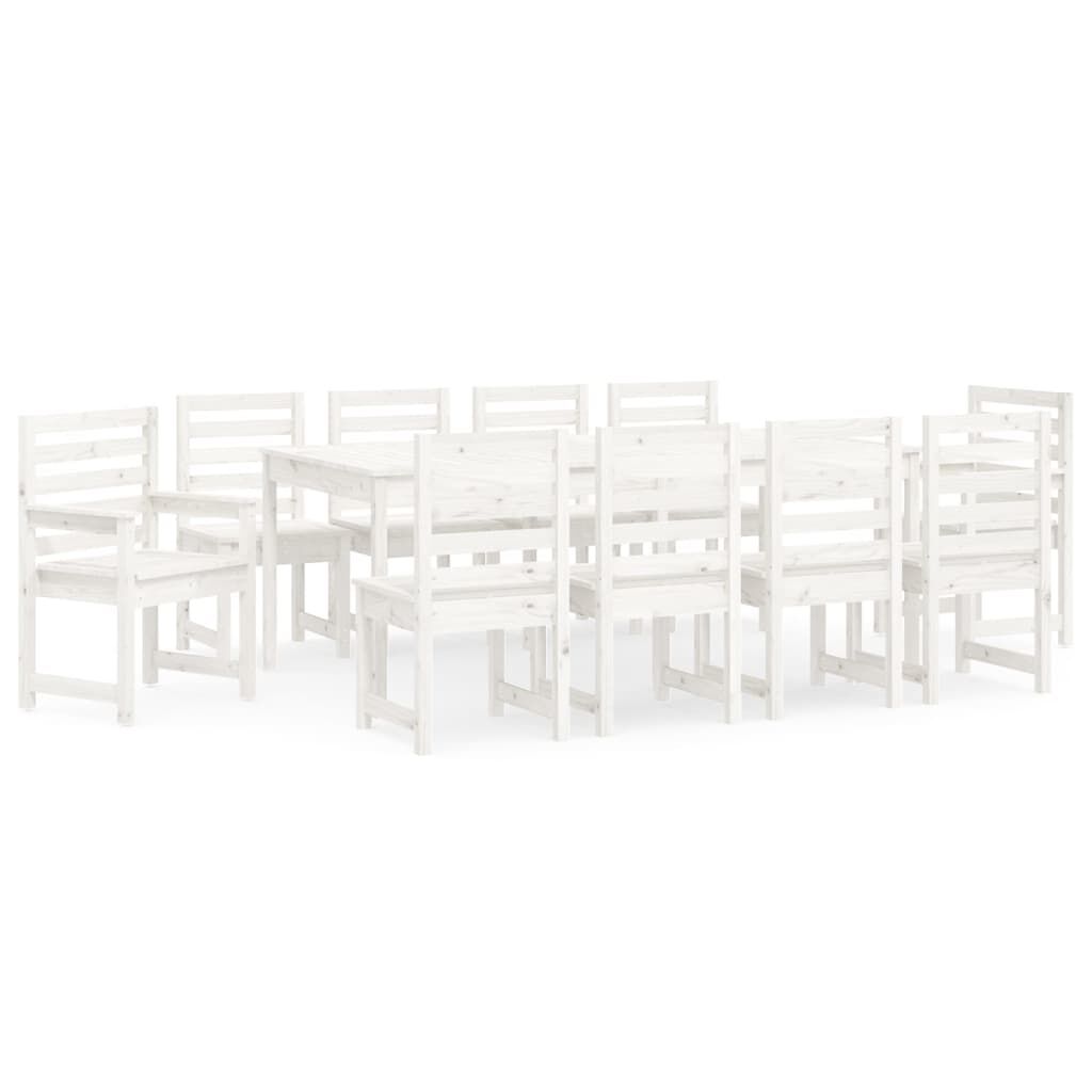 vidaXL Utendørs spisestue 11 deler heltre furu hvit