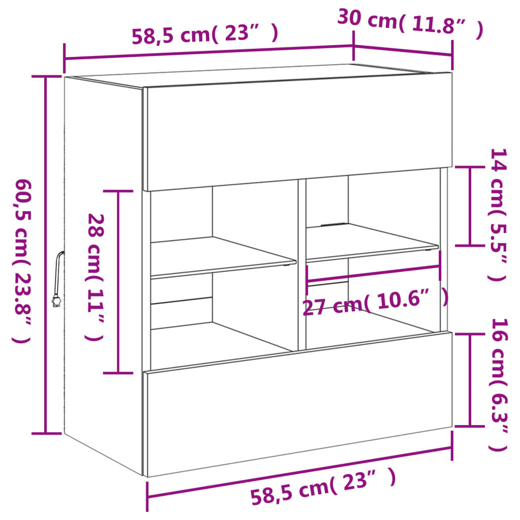 vidaXL Vegghengt TV-benk med LED svart 58,5x30x60,5 cm