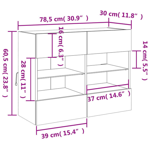 vidaXL Vegghengt TV-benk med LED svart 78,5x30x60,5 cm