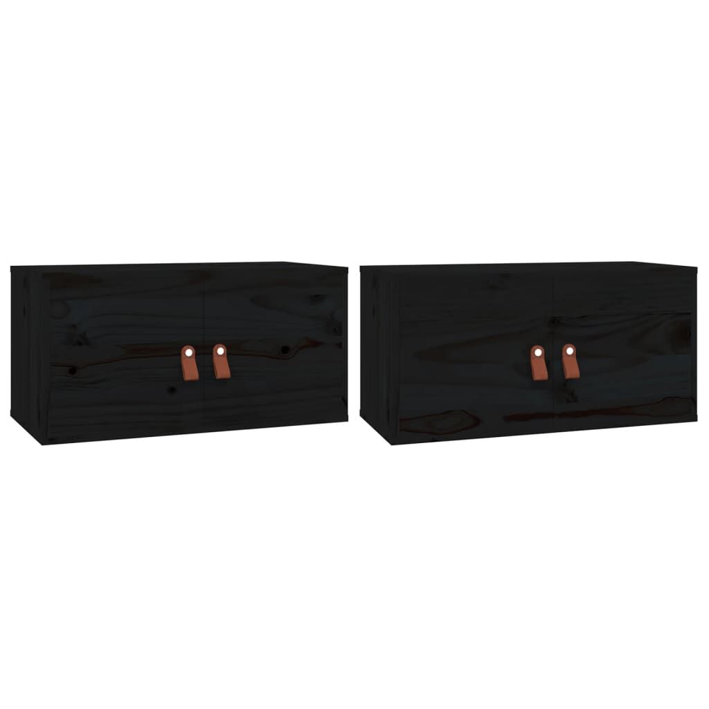 vidaXL Veggskap 2 stk svart 60x30x30 cm heltre furu