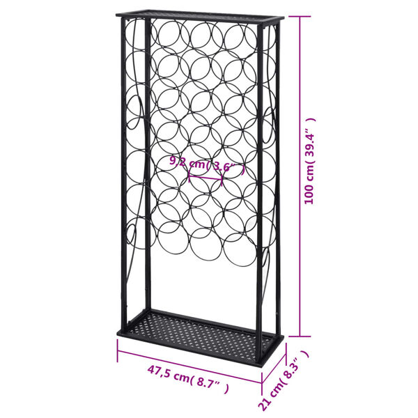 Denne gulvstående vinhyllen er et ekte blikkfang uansett hvor den står. Den er laget av pulverlakkert smijern slik at den er rustfri og vil vare i generasjoner!