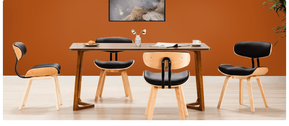 En ting du ikke kan gå glipp av i et retro interiør er de buede formene og myke linjene i møbler og tilbehør. Retro møbler kan også gjenkjennes av de koniske benene og bruken av tre. Dette kan være enten mørkt eller lyst tre som kan brukes i samme rom. Materialer som passer til denne retro interiørstilen er tre, rotting, plast, kork, jute, ull og fløyel.