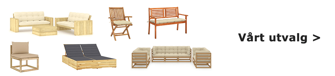Hagemøbler i tre er ideelle i både moderne og tradisjonelle uteområder. Tremøbler balanserer den naturlige atmosfæren utendørs med komforten innendørs. Velg møbler laget av tre til verandaen, hagen eller balkongen – du vil glede over dem i mange år.